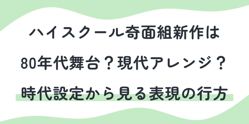 ハイスクール奇面組新作は80年代舞台?現代アレンジ?時代設定と放送枠から見る表現の行方2025年10月17日、『ハイスクール!奇面組』の39年ぶりの新作アニメ制作が発表されました。 ファンの間で注目を集めているのは、「物語の時代設定がどうなるのか?」という点です。 1980年代当時を再現するのか、それともスマホやSNSがある現代版にリメイク...