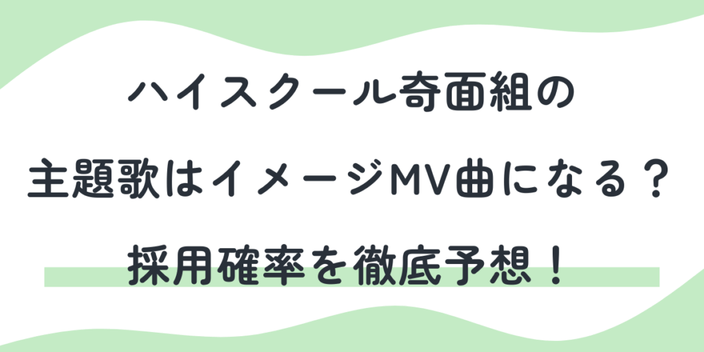 ハイスクール奇面組の主題歌はイメージMV曲になる?採用確率を徹底予想!2025年10月17日、『ハイスクール!奇面組』の39年ぶりの新作アニメ制作が発表されました。 旧作主題歌「うしろゆびさされ組」のカバー版が、河川唯(白石晴香さん)と宇留千絵(長谷川育美さん)の歌唱でYouTubeにてイメージMVとして公開され、ファンの間...