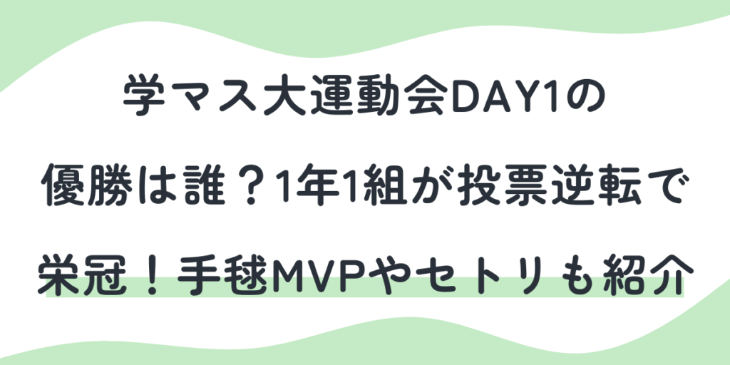 学マス大運動会DAY1の優勝は誰?1年1組が投票逆転で栄冠!手毬MVPやセトリも紹介代々木第一体育館で「学園アイドルマスター」初の大規模イベントとなる学マス大運動会DAY1が開催されました。 会場には多くのファンが集まり、SNSでも「#学マス大運動会_DAY1」がトレンド入りするほどの盛り上がり。 競技で熱戦を繰り広げるアイドルたちの...