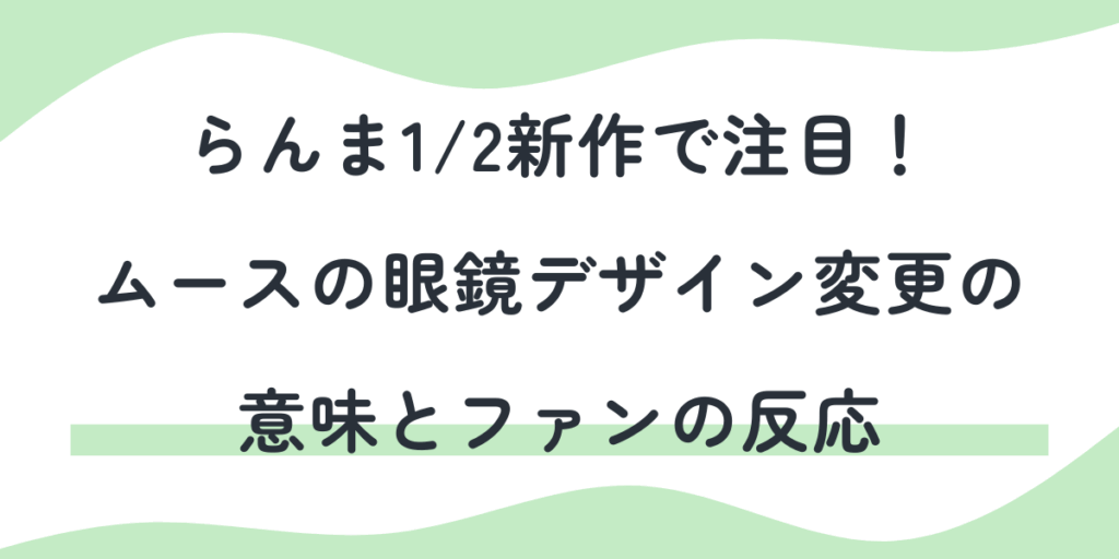 らんま1/2新作で注目!ムースの眼鏡デザイン変更の意味とファンの反応2025年10月から放送される『らんま1/2』新作第2期。 その中でも特に話題を呼んでいるのが、新キャラクター・ムースのビジュアルです。 原作や旧アニメでは「ぐるぐる眼鏡」「瓶底メガネ」でお馴染みだった彼が、新作では透けるタイプの眼鏡に変化し、大き...