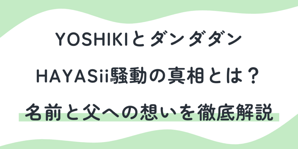 YOSHIKIとダンダダンHAYASii騒動の真相とは?名前と父への想いを徹底解説2025年8月8日に放送されたアニメ『ダンダダン』第18話で、突如登場した架空のバンド“HAYASii”。 彼らが披露した楽曲「Hunting Soul」は、演出やスタイルがあまりにもX JAPANを思わせる内容で、放送直後からSNSで大きな話題となりました。 とりわけ、HAYASi...