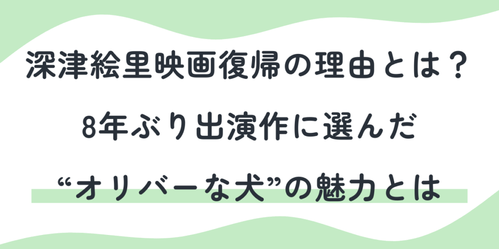 深津絵里映画復帰の理由とは?8年ぶり出演作に選んだ“オリバーな犬”の魅力とは2025年9月26日に公開される映画『THE オリバーな犬、(Gosh!!)このヤロウ MOVIE』で、女優・深津絵里さんが8年ぶりにスクリーンに戻ってきます。 なぜ今、そしてなぜこの作品で復帰を選んだのでしょうか? 誰もが気になるその理由と、彼女が出演を決意し...