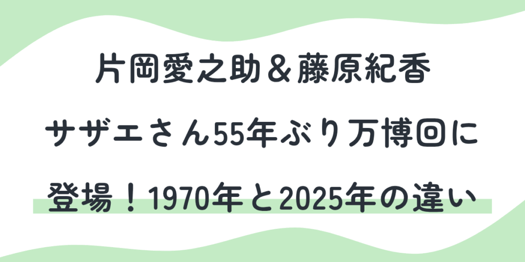 片岡愛之助&藤原紀香 サザエさん55年ぶり万博回に登場!1970年と2025年の違いを比較国民的アニメ『サザエさん』に、片岡愛之助さんと藤原紀香さん夫妻が本人役で登場します。 放送は2025年8月24日(日)の特別編「祝!万博開催スペシャル」。今回描かれるのは、1970年の大阪万博をテーマにしたエピソードの再放送と、2025年の大阪・関西万...
