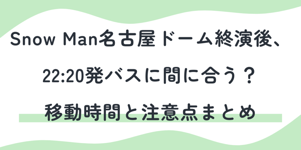 Snow Man名古屋ドーム終演後、22:20発バスに間に合う?移動時間と注意点まとめ