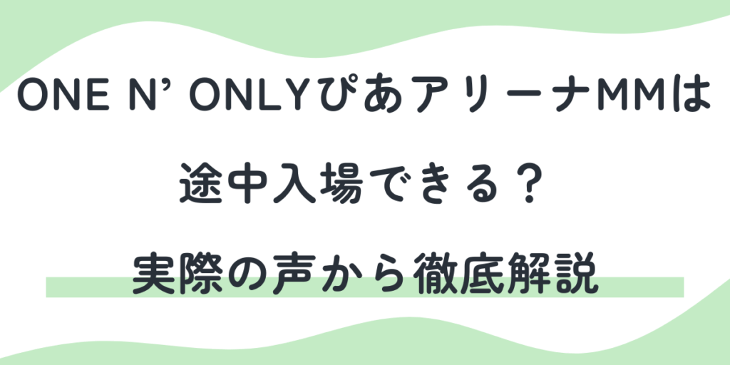 ONE N’ ONLYのぴあアリーナMM公演に行く予定だけれど、"都合でどうしても開演に間に合わないかもしれない"──そんな不安を抱えている人は少なくありません。 実際にこの会場では、遅れて到着する来場者が多く、SNSでも「途中入場は可能?」「同行者とバラバ... -
