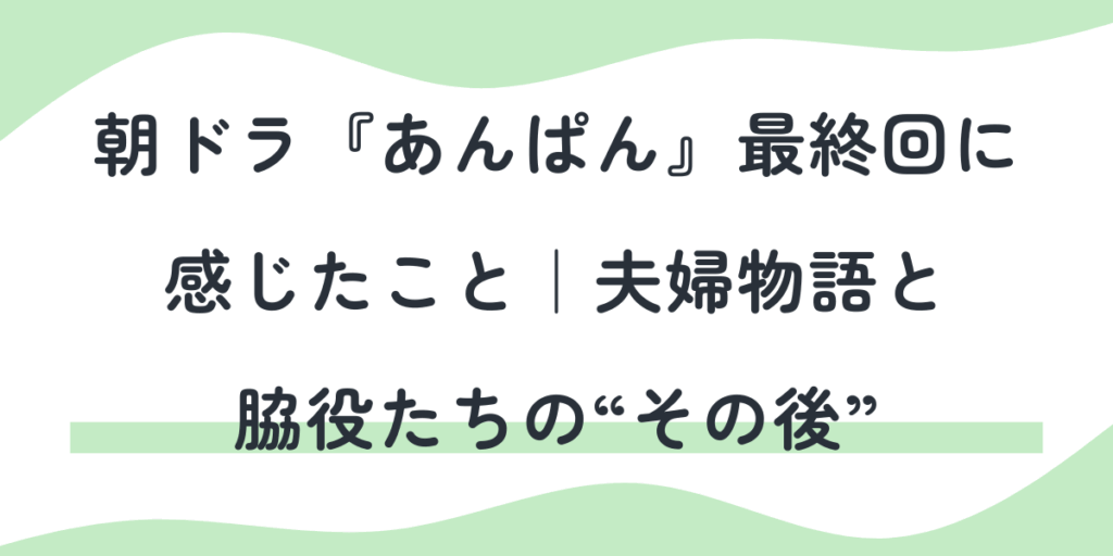 朝ドラ『あんぱん』最終回に感じたこと|夫婦物語と脇役たちの“その後”