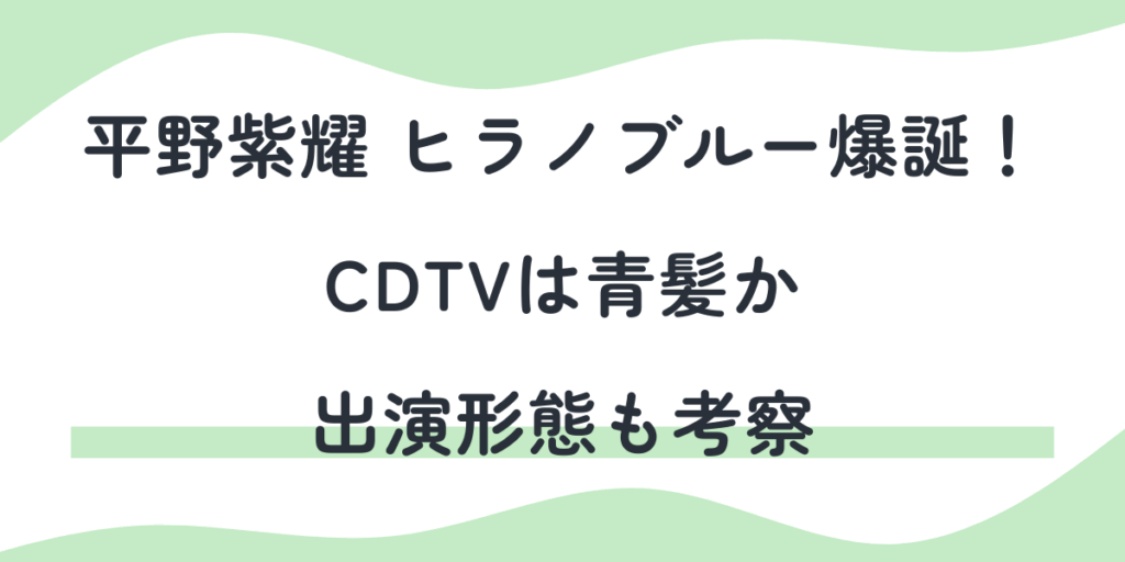 平野紫耀 ヒラノブルー爆誕!CDTVは青髪か出演形態も考察