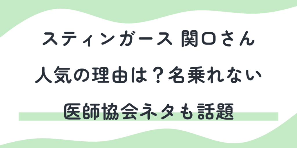 スティンガース 関口さん人気の理由は?名乗れない医師協会ネタも話題