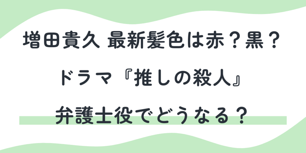 2025年10月期に放送される新ドラマ『推しの殺人』(読売テレビ・日本テレビ系)で、NEWSの増田貴久さんが弁護士役として出演します。 ファンの間では「まっすーの髪色は今どうなってるの?」と話題になっており、赤髪目撃談や黒髪予想がSNSで飛び交ってい... -