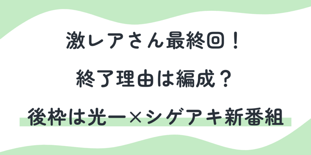 激レアさん最終回!終了理由は編成?後枠は光一×シゲアキ新番組
