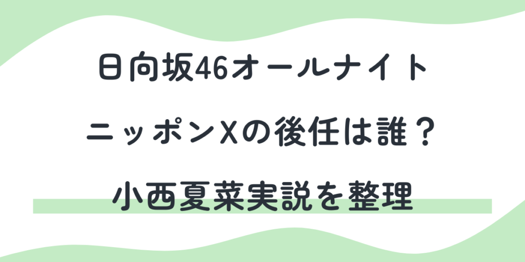 松田好花さんの卒業発表を受けて、「日向坂46・松田好花のオールナイトニッポンXはどうなるの?」「後任は小西夏菜実さんが濃厚って本当?」と気になっている人も多いと思います。Xなどでは具体的な名前が挙がる一方、公式情報が少なく、予想が先行してい... -