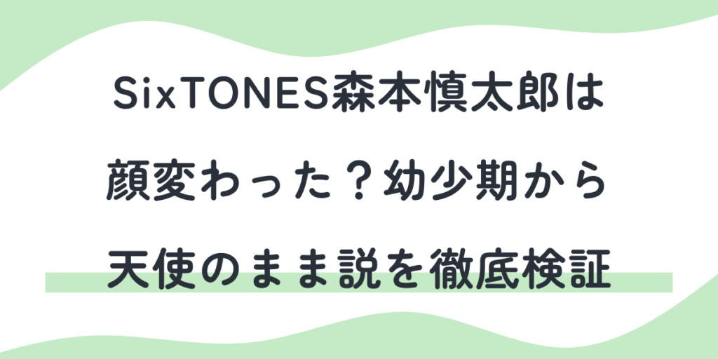 SixTONESの森本慎太郎さんについて、「幼少期と比べると顔が変わったように見える」「でも、ずっと天使のままじゃない?」と感じたことがある人も多いのではないでしょうか。 体が大きくなり、役柄や表情も大人っぽくなった一方で、ふとした瞬間には昔と変... -