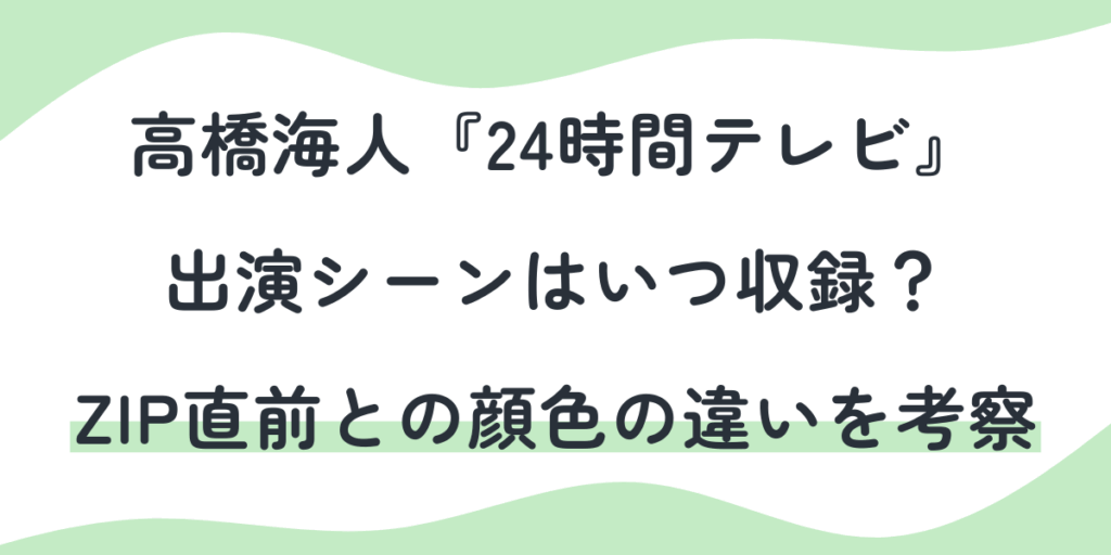 高橋海人『24時間テレビ』出演シーンはいつ収録?ZIP直前との顔色の違いを考察