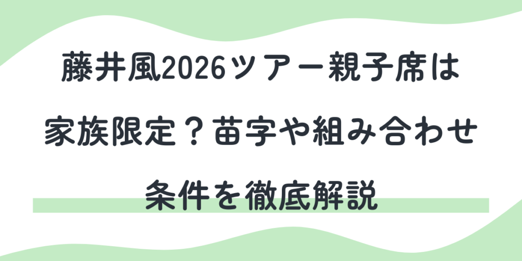 藤井風さんの2026年ツアーで用意されている「親子席」について、SNSでは 「全員が親子じゃないとダメ?」 「苗字が違ったら入れない?」 「友人や祖父母と一緒でも大丈夫?」 といった疑問の声が多く見られます。 親子席という名称から“家族限定の特別席”... -