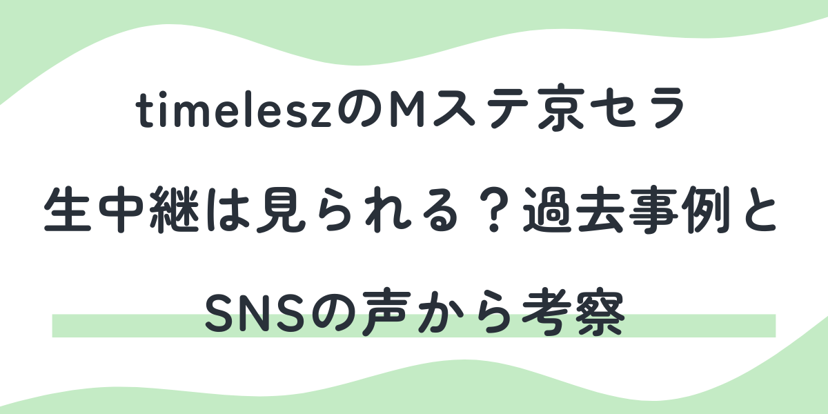2025年、timeleszが出演予定のミュージックステーション(Mステ)京セラドーム生中継について、「その日の公演に入っているファンは生で見られるのか?」と気になっている方も多いのではないでしょうか。